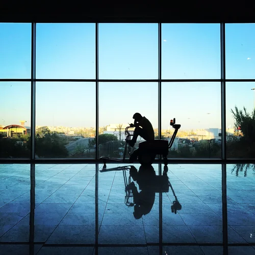 A lot of time when travelling is spent in the oversize baggage area waiting for the infamous tripod tubes to turn up. Here, in Poznan Poland on the other side of a locked door. All my kit flies in Peli cases, with laser cut foam for protection.